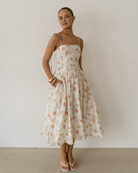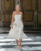 Elevate your summer wardrobe with this floral midi dress in a breathable linen blend. Featuring a flattering square neckline, adjustable straps, and a flowy A-line skirt with functional pockets, it’s the perfect wedding guest dress or garden party outfit. Finished with a concealed back zipper and crafted in a Linen blend fabric for effortless elegance.