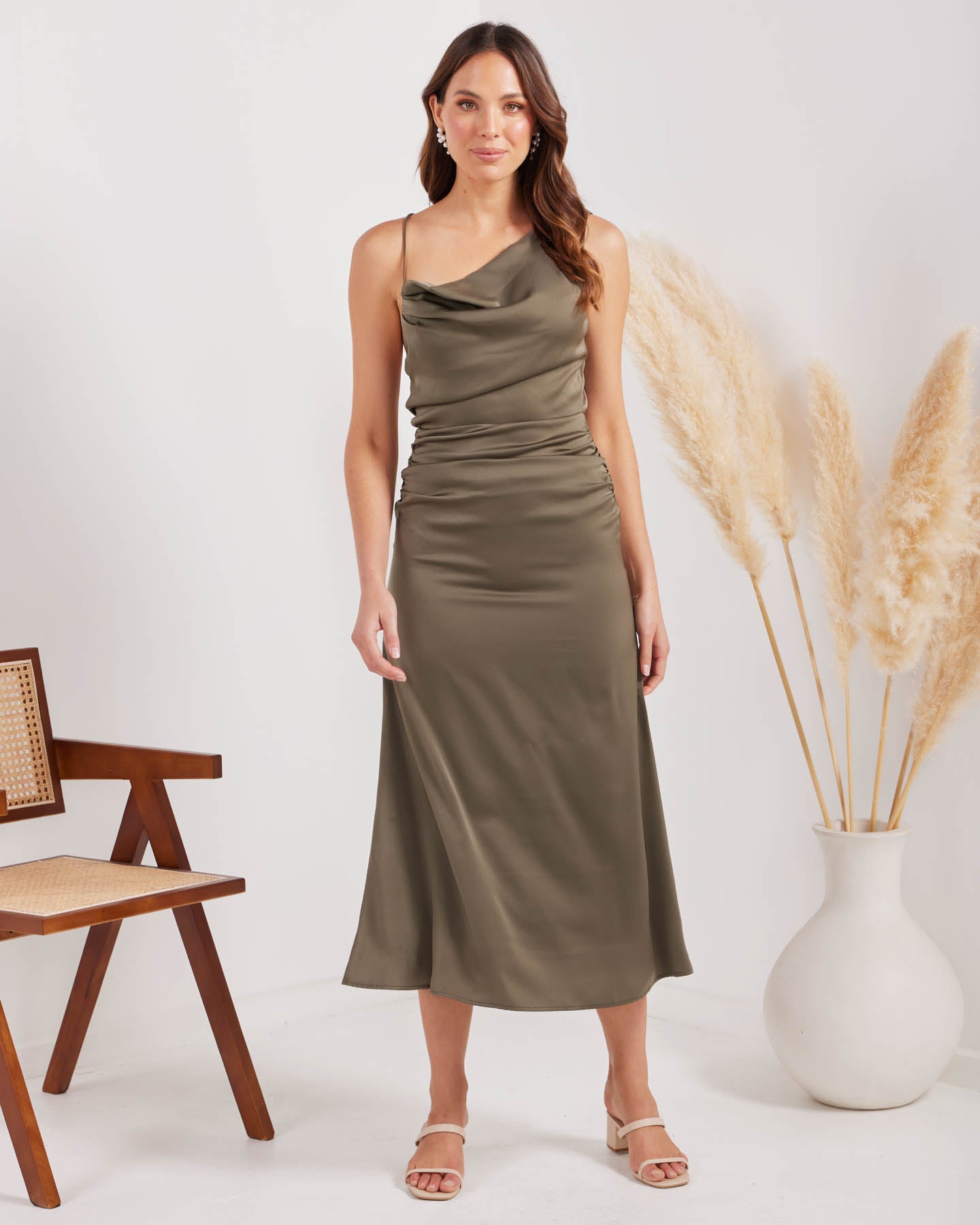 The Daphne Dress by Twosisters the Label is a silky satin maxi dress made for a magical evening! Parading an asymmetric neckline and simple strappy back detail, this dress a classic evening-wear with a twist!