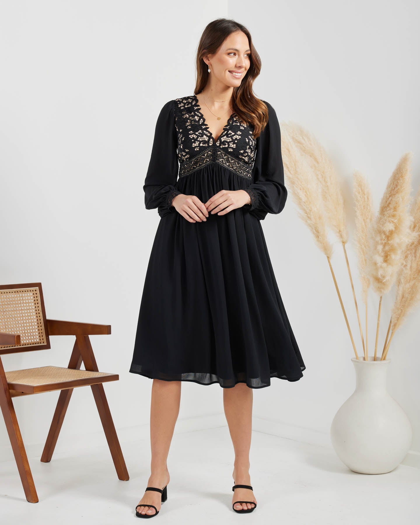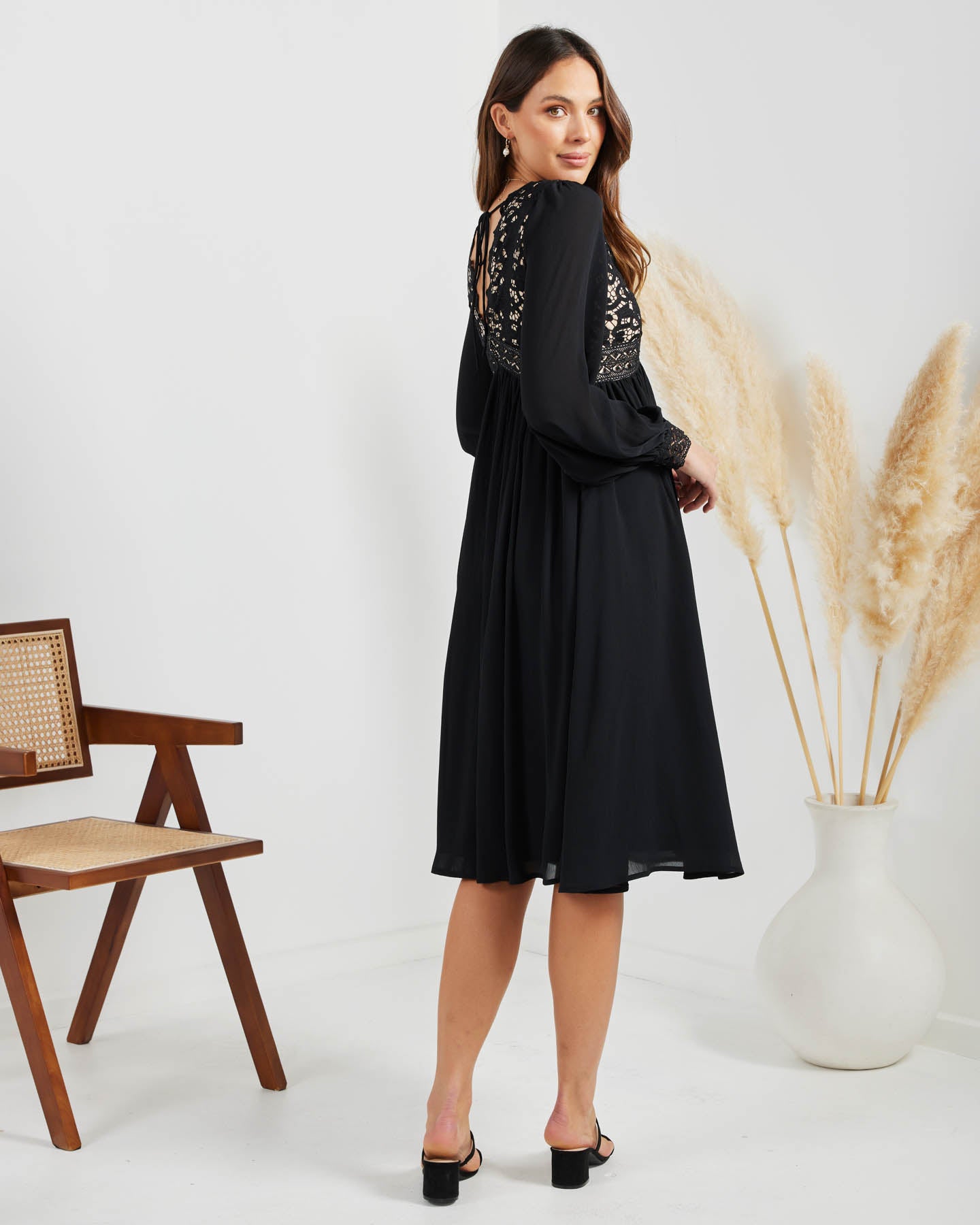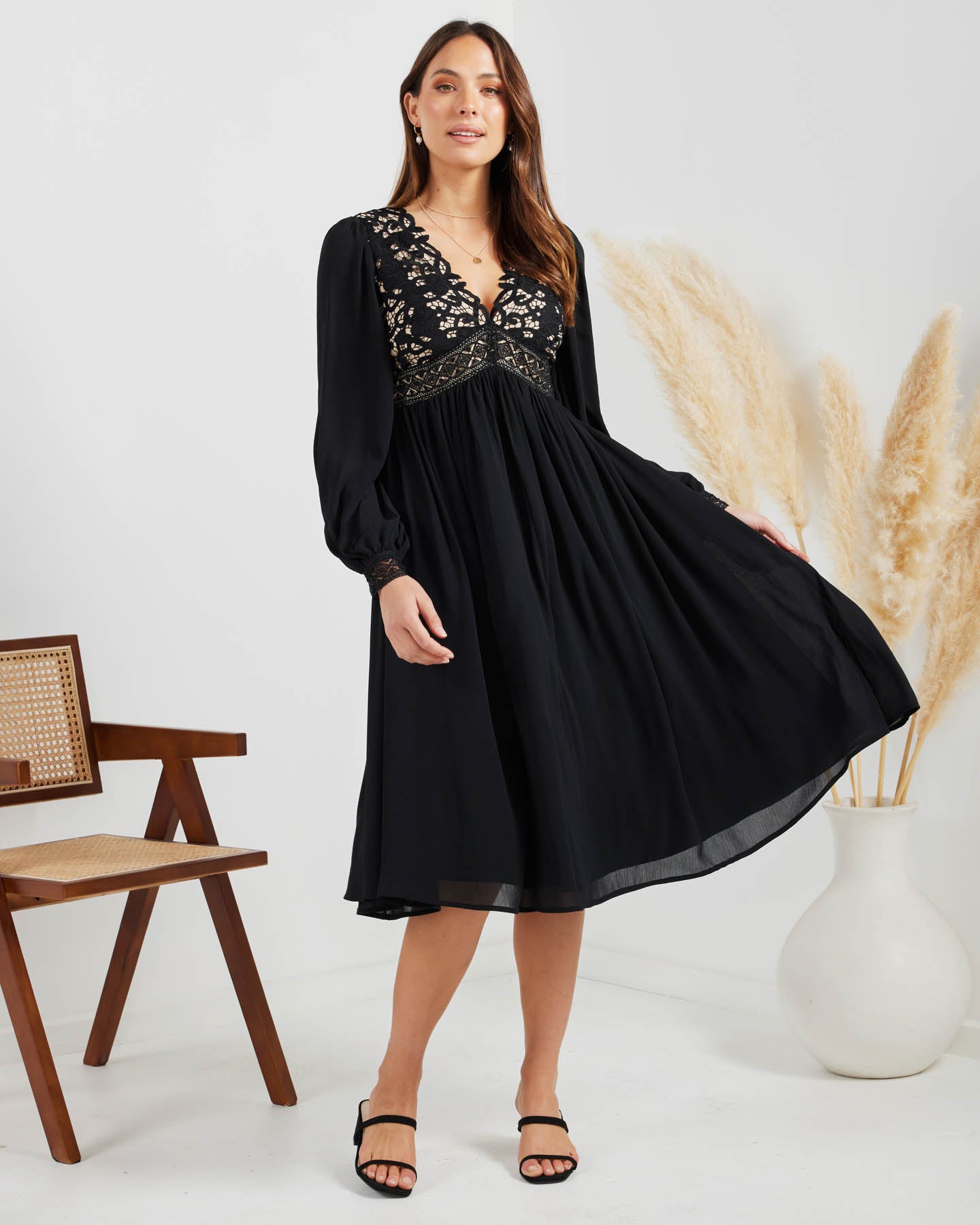 Sultry, boho and dreamy. Twosisters The Label is bringing boho back with the Colada Dress! With intricate lace details, soft sheer sleeves and flowy chiffon skirt, this midi dress transforms its wearer into a dream-like figure. Ever wanna dress like your favourite fictional character? This dress will do the trick.