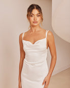 For the sleek, modern minimalist, Twosisters The Label Celeste Bridal Gown is meant for the bride who trusts in the beauty of minimalism. This silk gown elongates your figure while contouring and enhancing your natural curves. Perfect option for an intimate wedding among close friends.