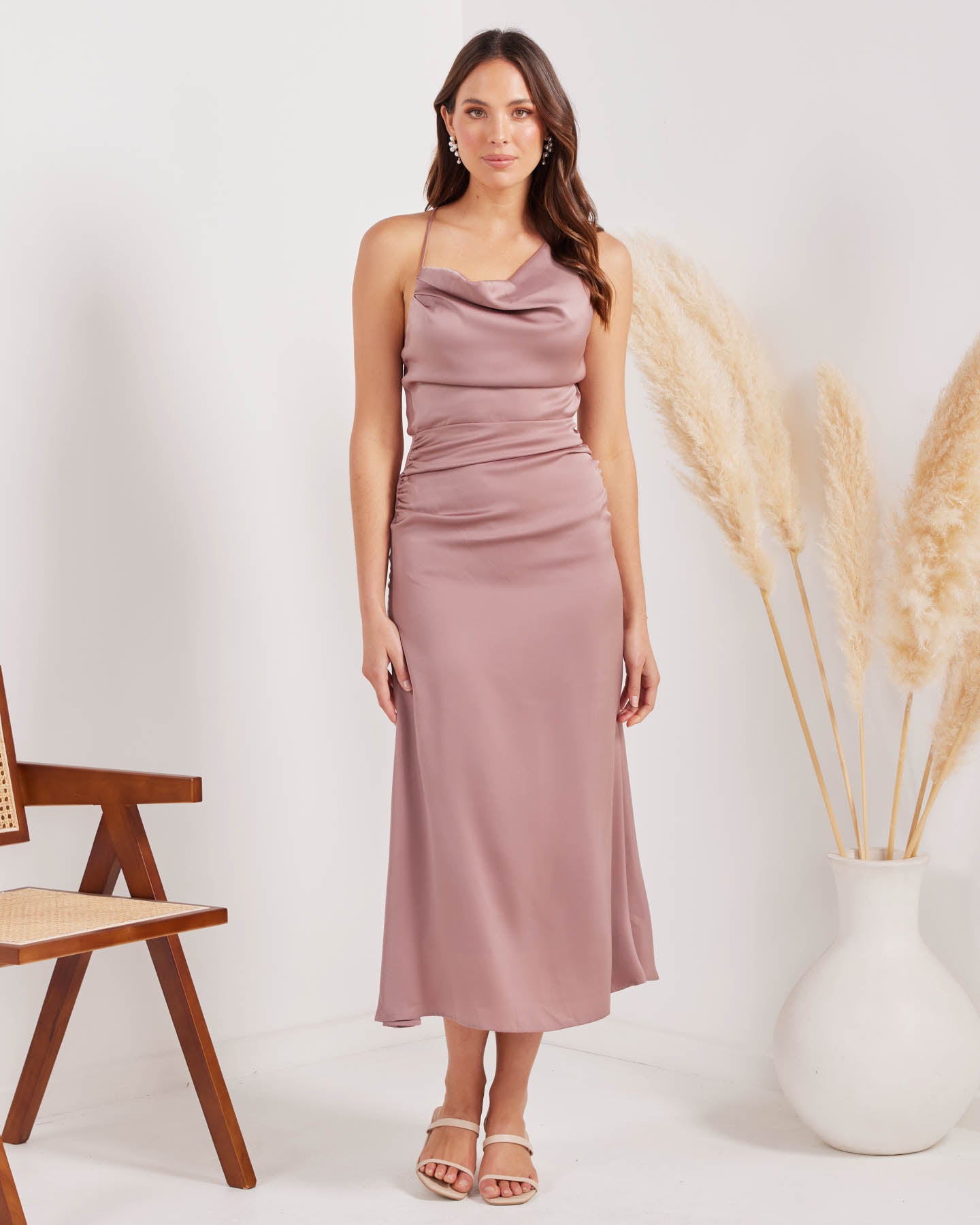 The Daphne Dress by Twosisters the Label is a silky satin maxi dress made for a magical evening! Parading an asymmetric neckline and simple strappy back detail, this dress a classic evening-wear with a twist!
