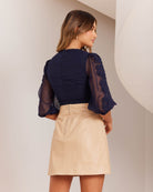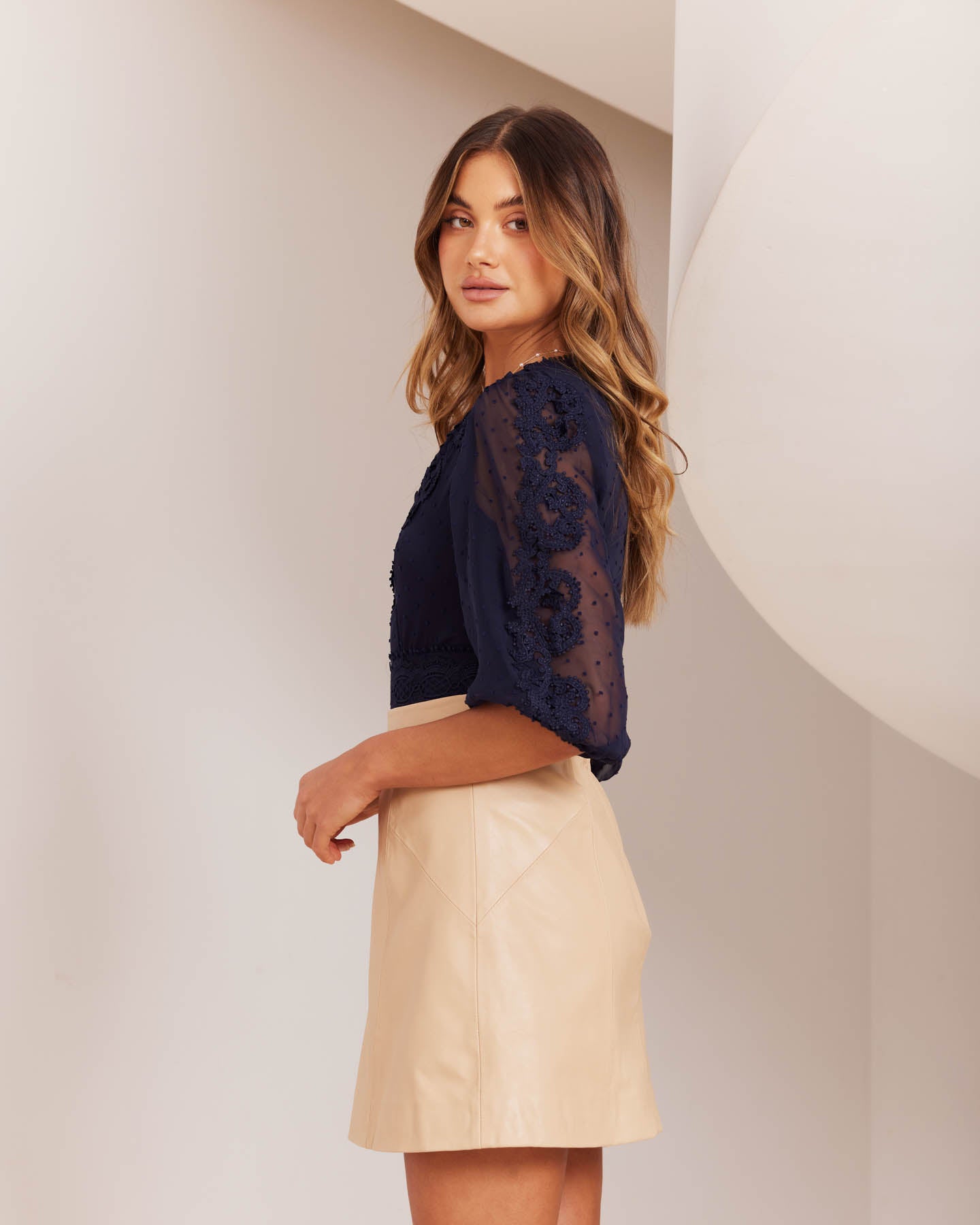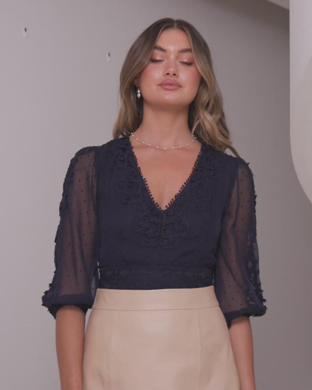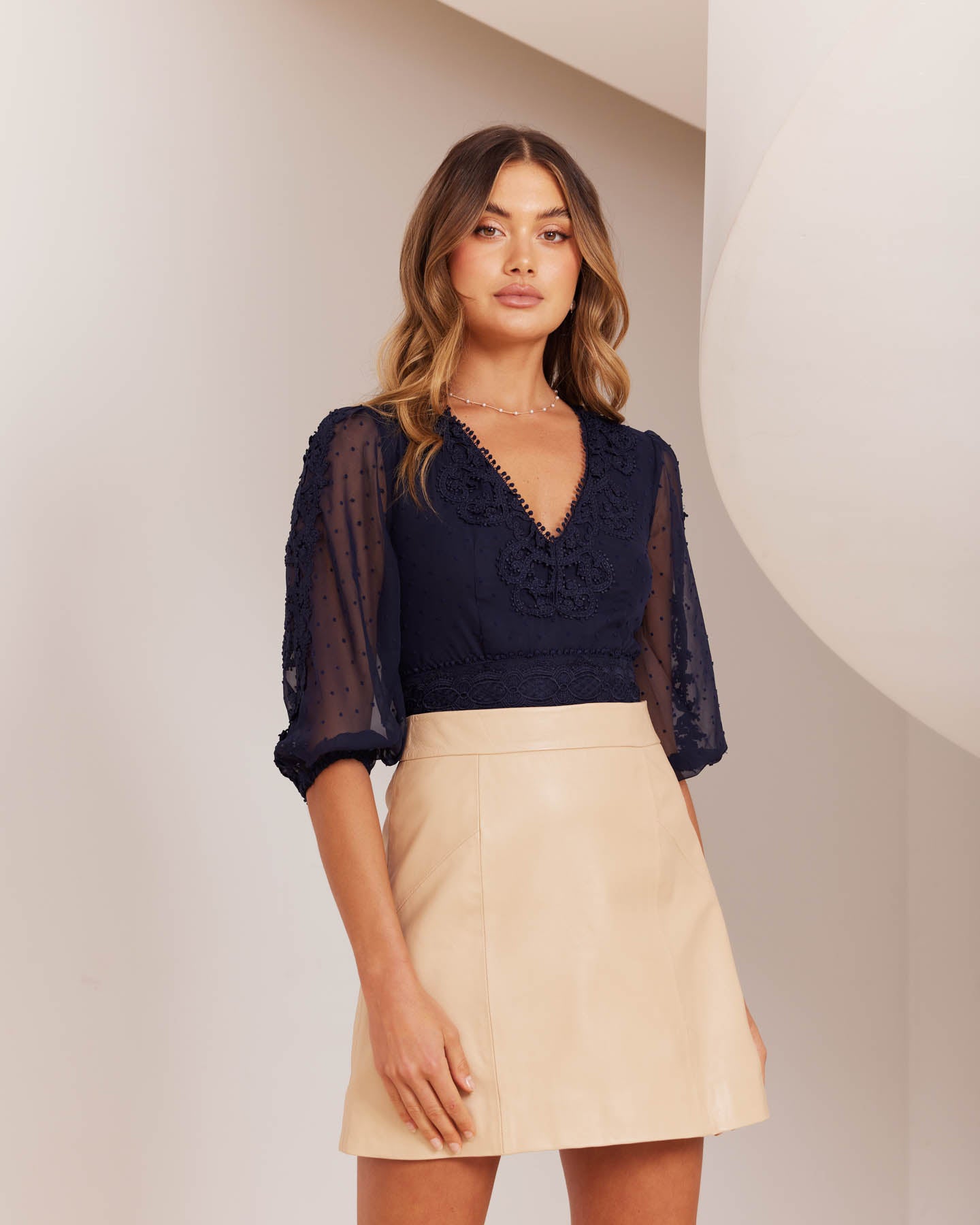 Twosisters The Label has designed a regal bodysuit for those who believe "more and more" while still wanting a sleek look. With rich patterns and texture, you are bound to feel luxurious in the Reagan Bodysuit. Style with suit pants for some glamorous edginess.