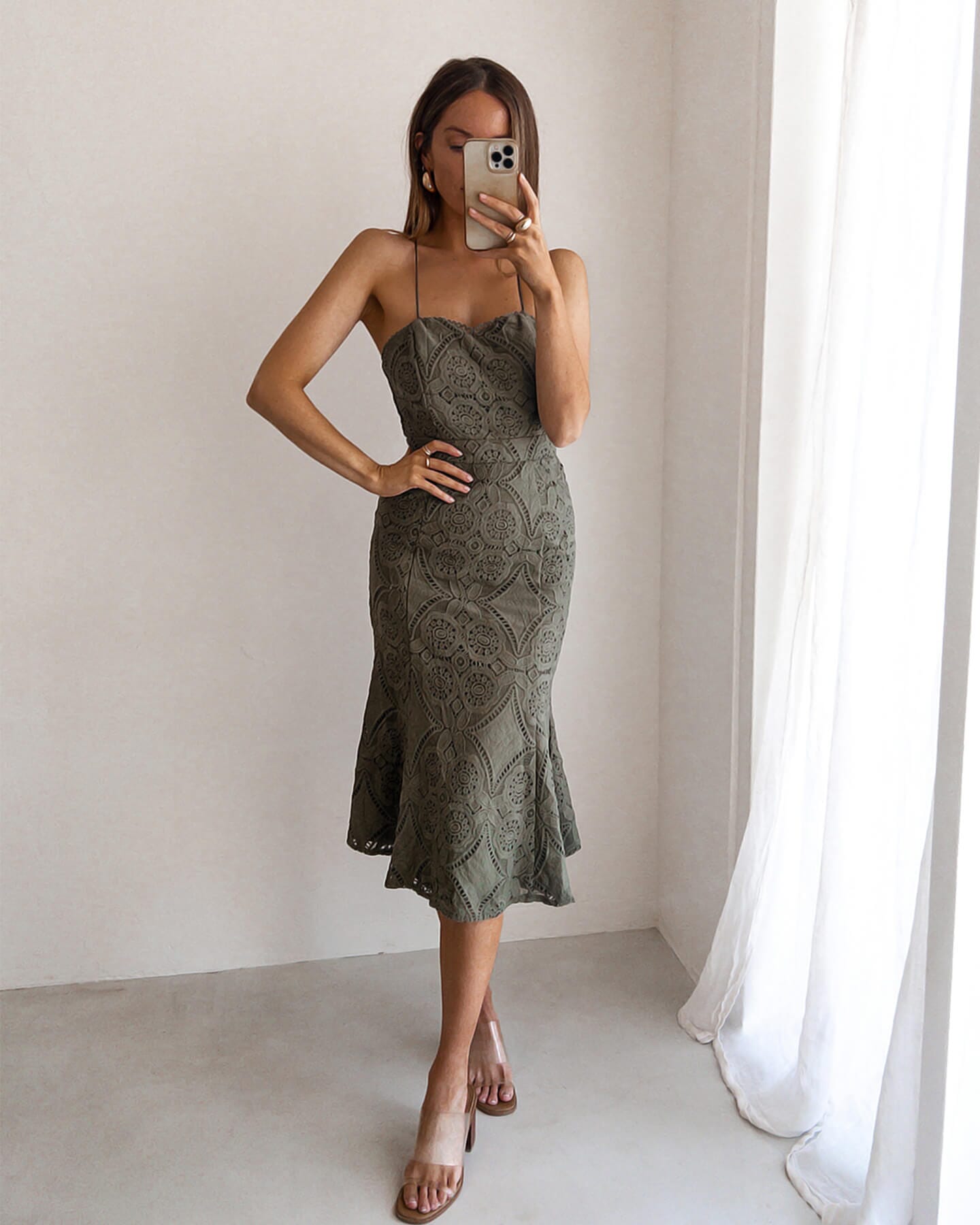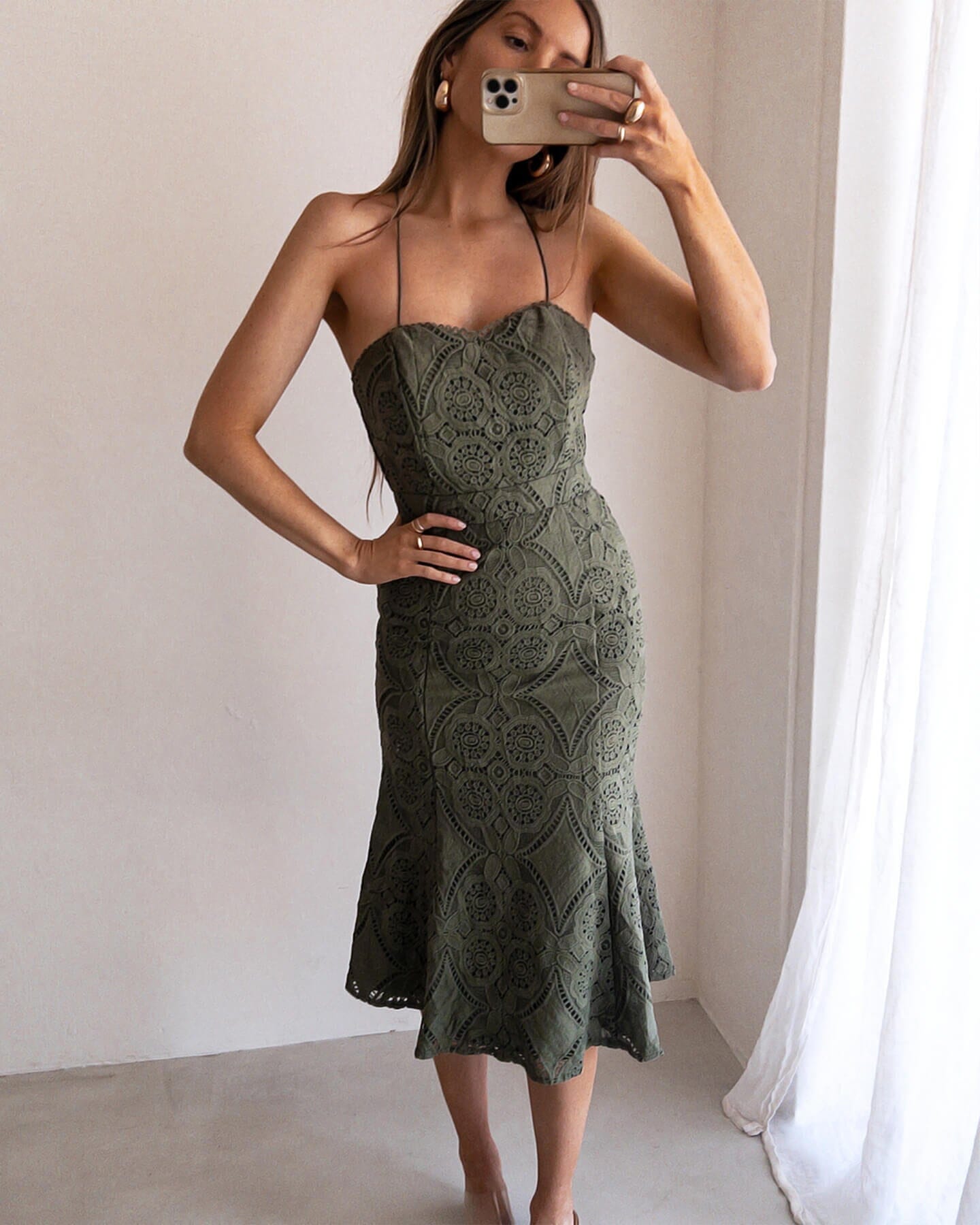 Powerful and sophisticated women, this one's for you! The Serenity Dress by Twosisters The Label has a structured cut with a sweetheart neckline and fluted hem for extra shape. This elegant design flaunts regal patterns with skilful subtlety and a lace-up back for some added spice!