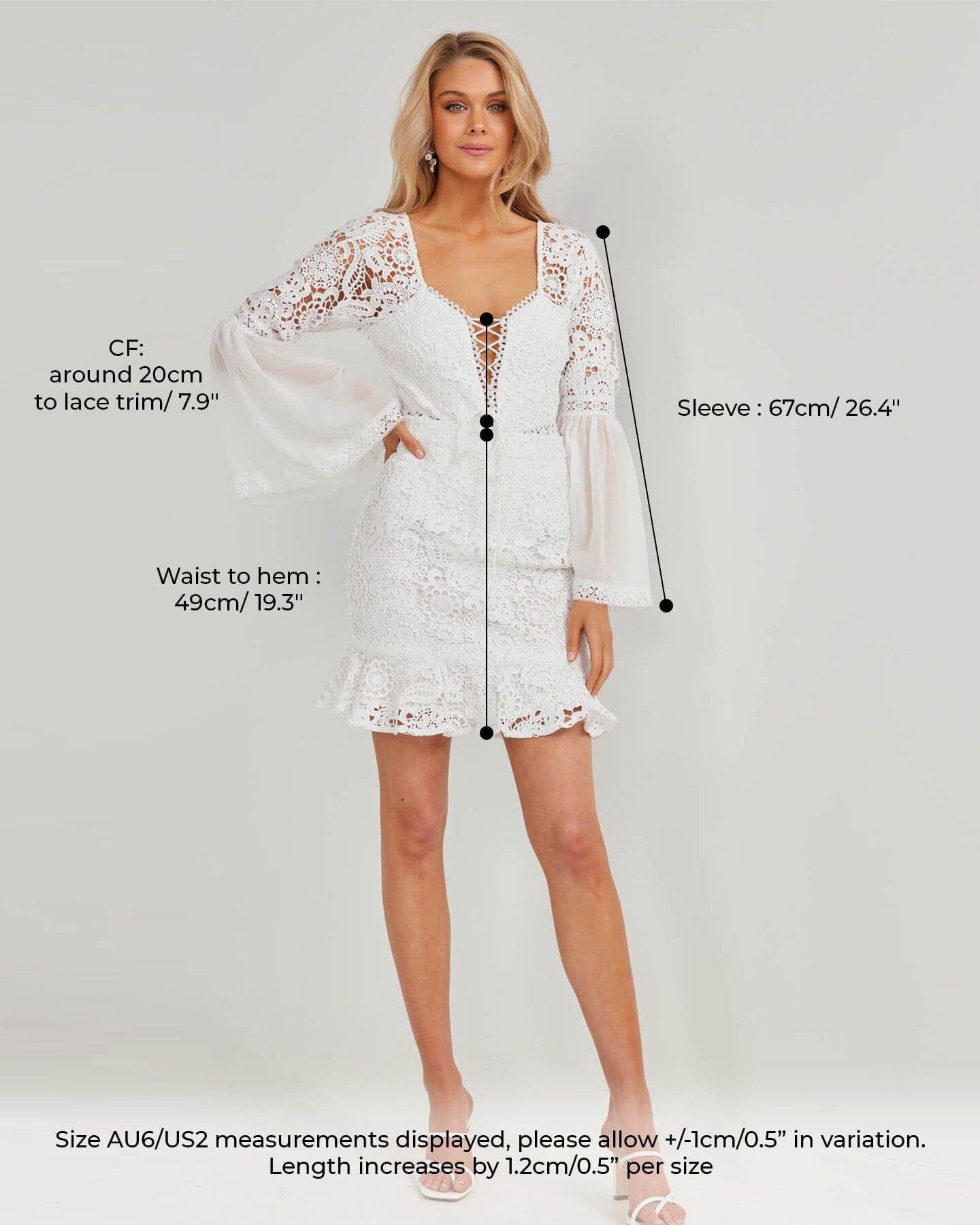 -Please see the last image for garment measurements. Please note there is an increase of 1.2cm/0.5” per size for length measurements