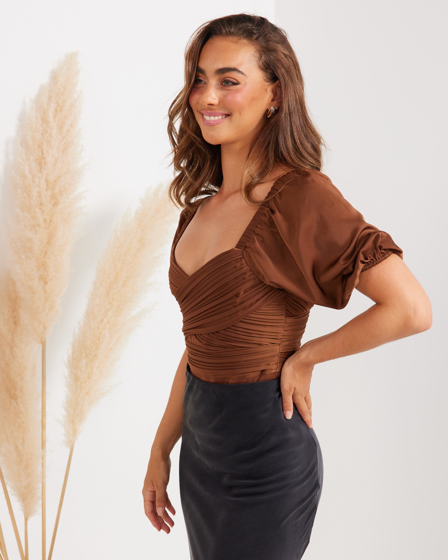 Twosisters the Label Magnolia Bodysuit features a sweetheart neckline with pleated crossovers at the bust. Its soft and luxurious fabric creates an expensive look for its wearer. Pair with tailored pants for an effortless transition from work to after-work drinks.