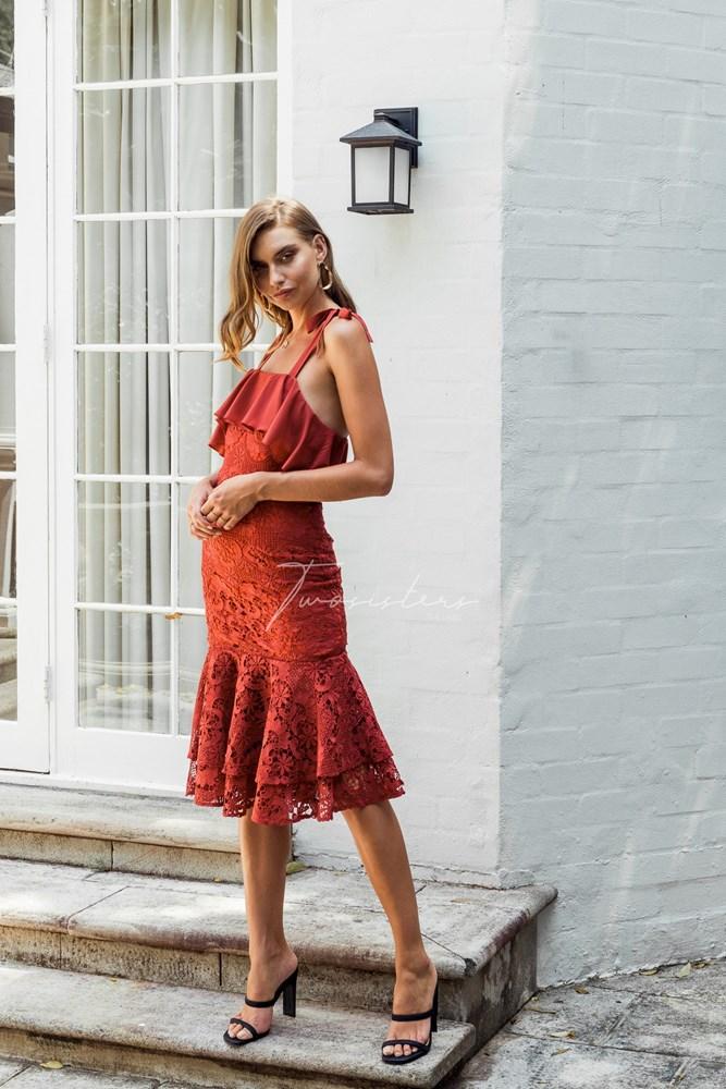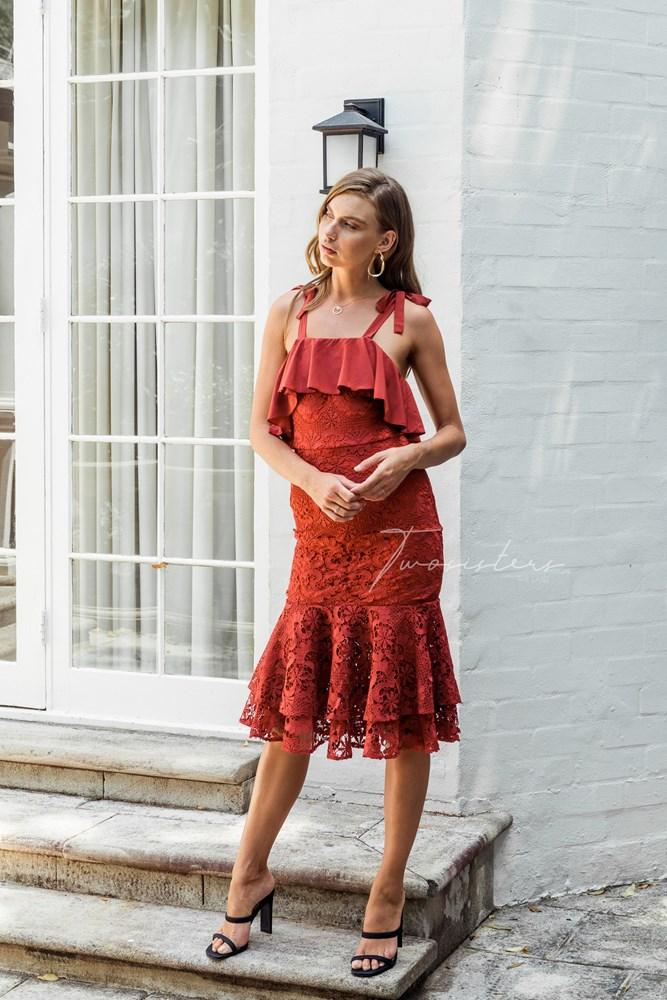 Elegant and feminine, the Twosisters The Label Mallory Dress is statement look for your next occasion. Featuring ribbon-tie straps, frill at bodice and tiered frill hem. Perfect for twirling on the dancefloor, this chic style is best worn with a simple heel.