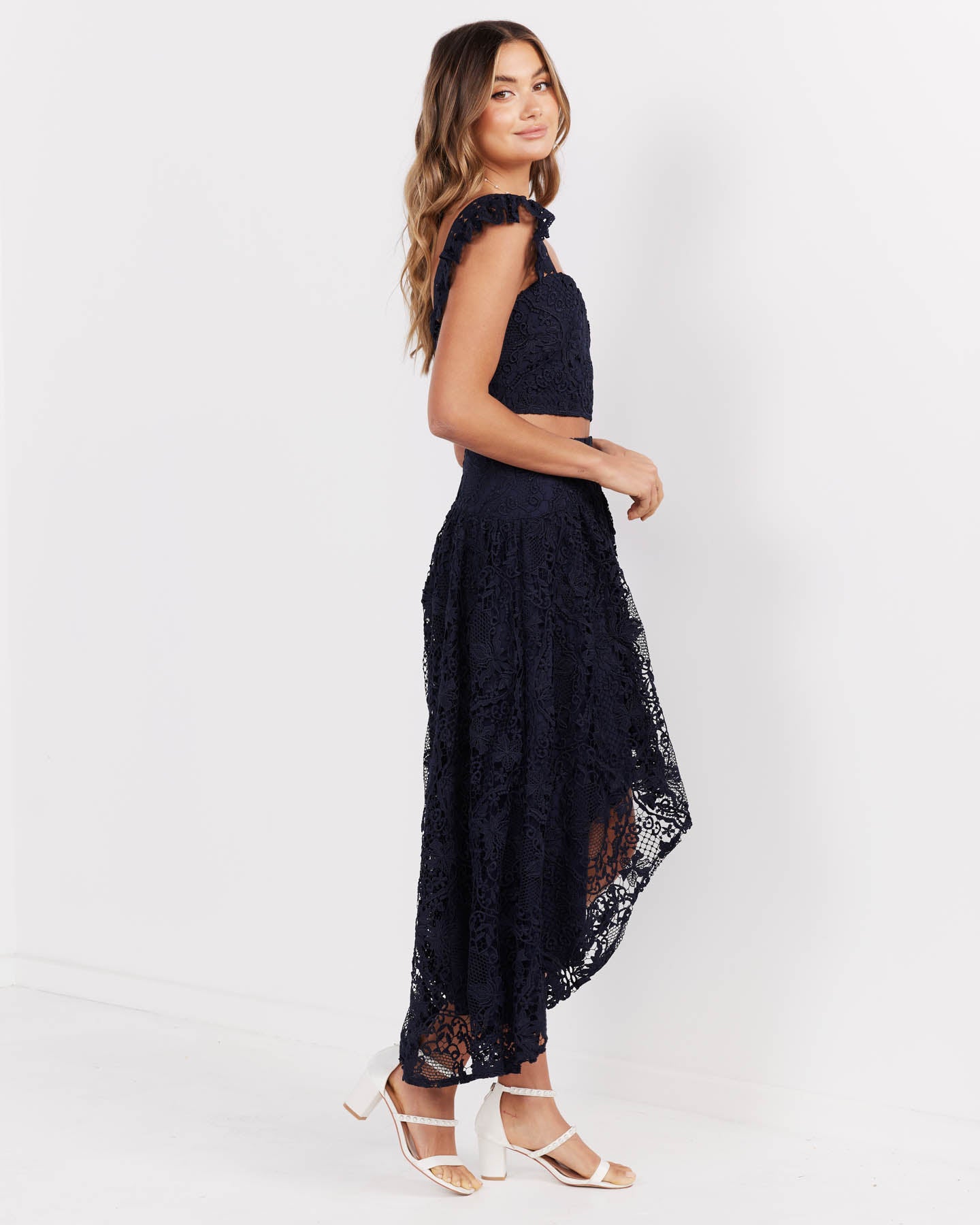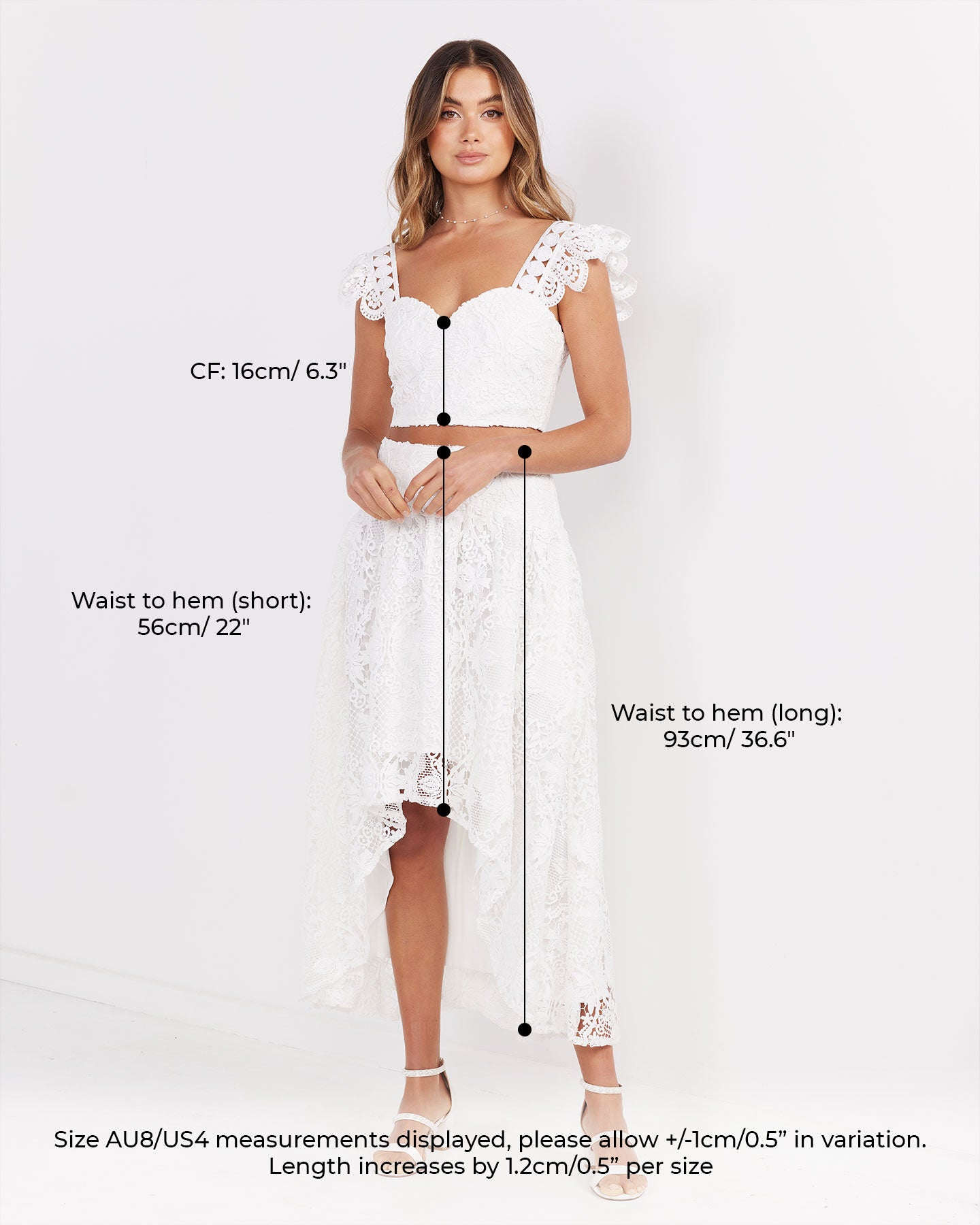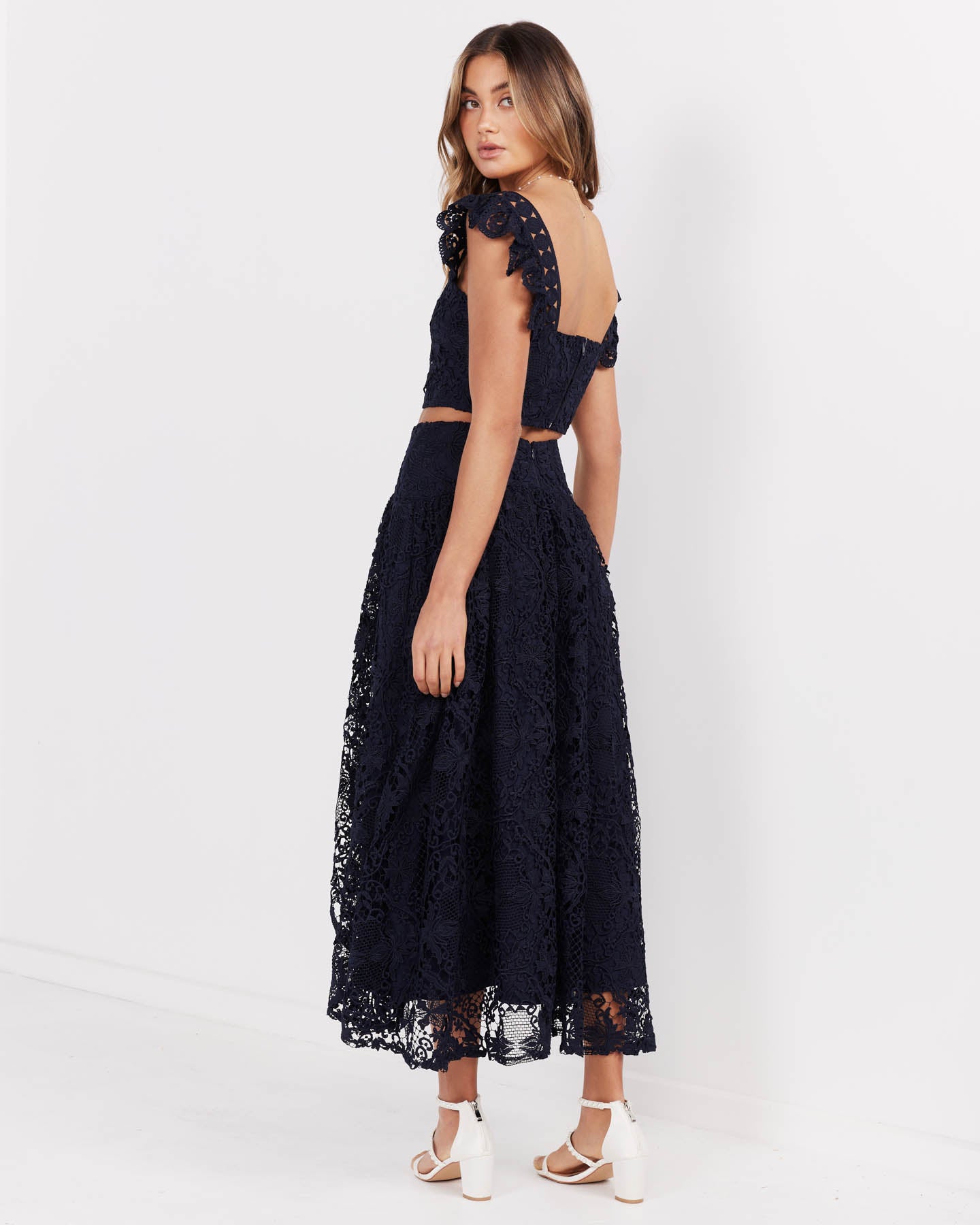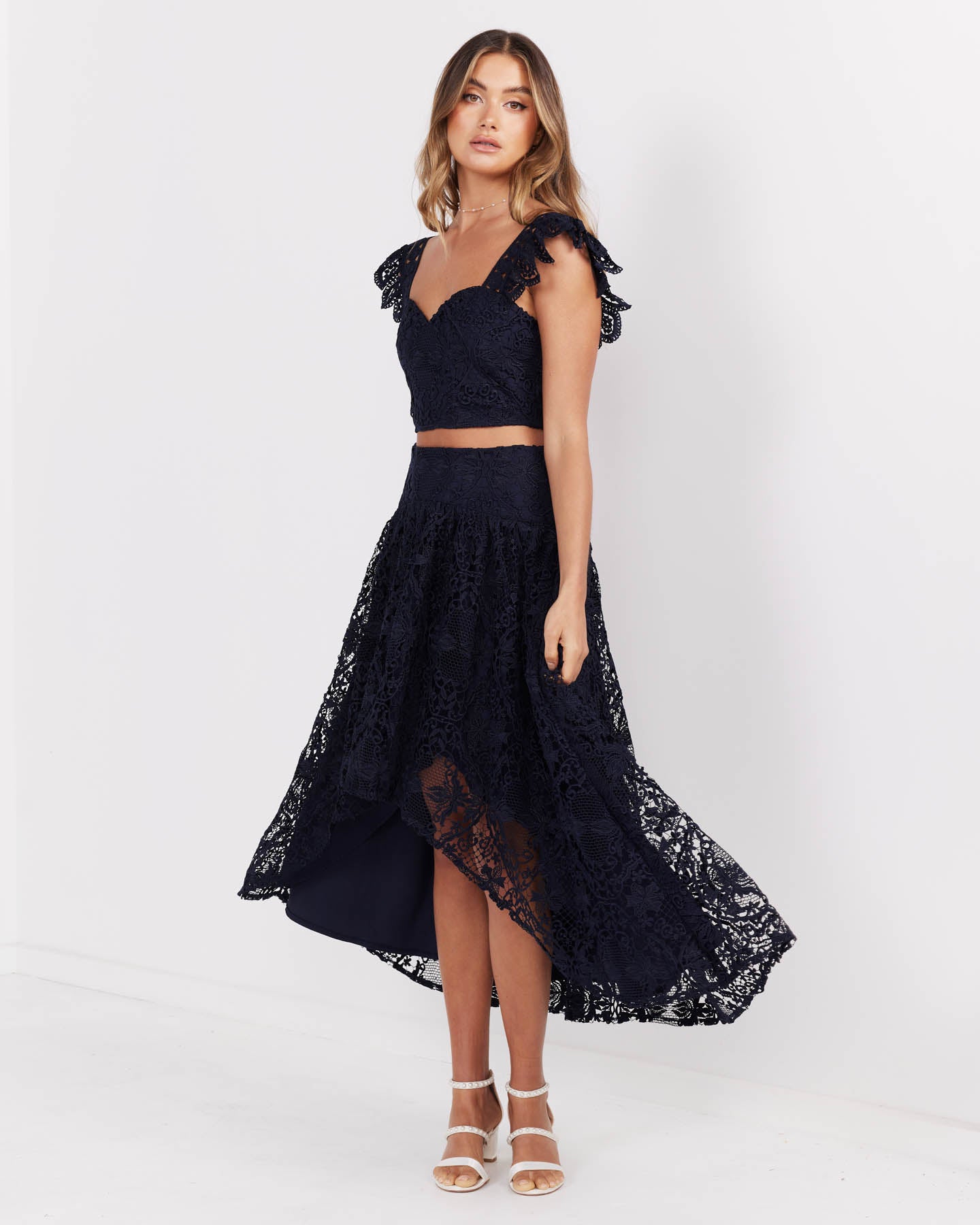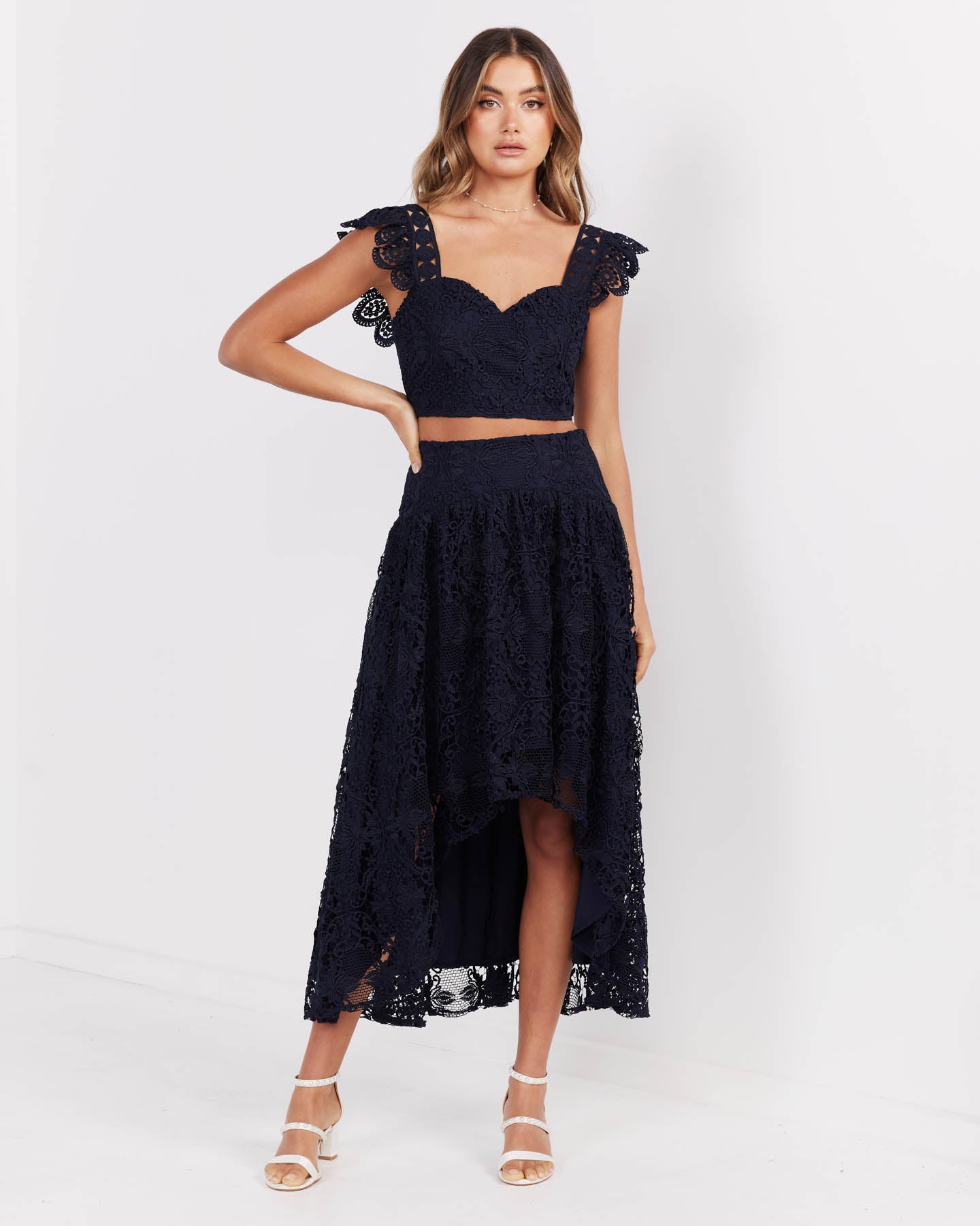 A wondrous two-piece set for wearable whimsicality. The Yassie Set by Twosisters The Label will take you on a fanciful adventure. The cropped top features a sweetheart neckline and scalloped lace sleeves, while the skirt has a midi a-line silhouette. With luxe laces as the centre of attention, this will be the special occasion look of your dreams!
