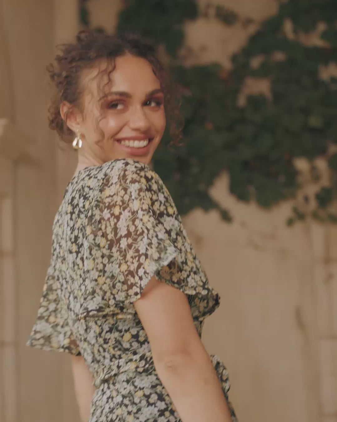 Feminine and flowy, the Twosisters The Label Arkansas Dress is an easy wearing wrap look floral midi. Featuring a v-neckline, sheer flowy sleeves, concealed zip at back, detachable waist tie and wrap-look skirt with frill hem. Dress it up with your favourite heels or pair it with sneakers and a denim jacket for a casual look. As seen on @hellomandyb