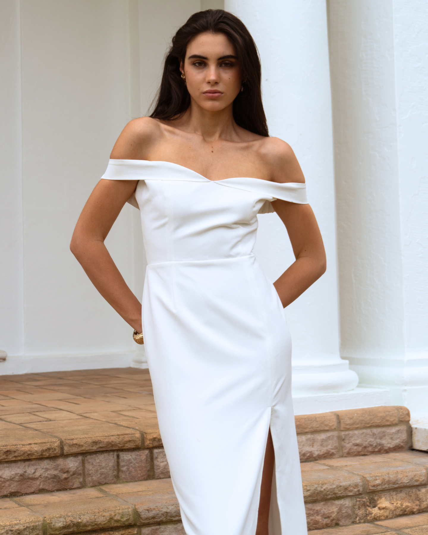 A concealed side zipper ensures a seamless fit, while the tailored bodice offers definition without stretch. Perfect for formal events, modern brides, or any occasion that calls for elevated style.