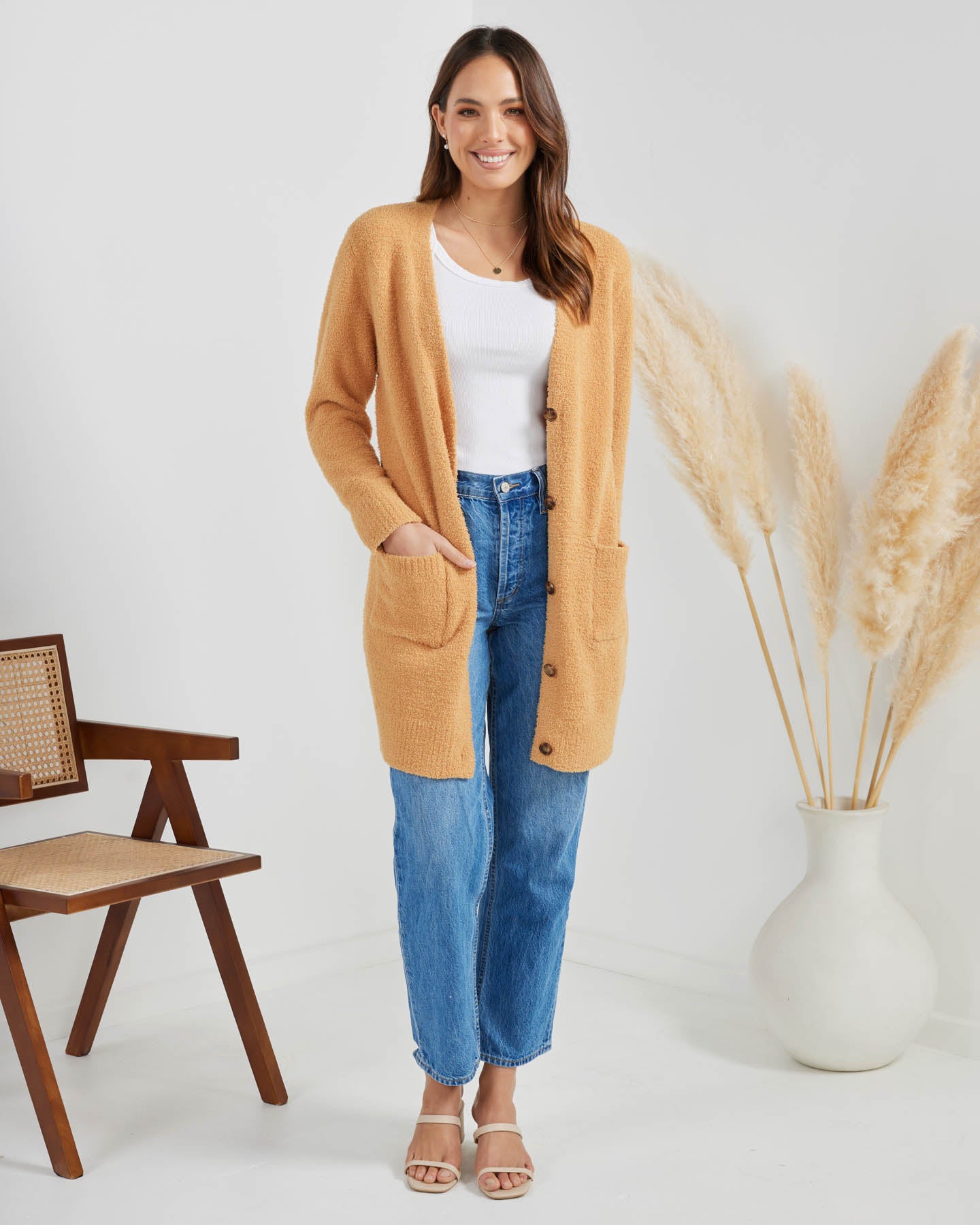 Velvety soft to the touch! The Faith Cardigan rocks a midi length, providing you with comfort, security and that extra protection from the cold. This Twosisters The Label design is meant to be a staple piece in a capsule wardrobe. A cardigan on-the-go that pairs well with anything - perfect for when you're leaving the house in a rush!