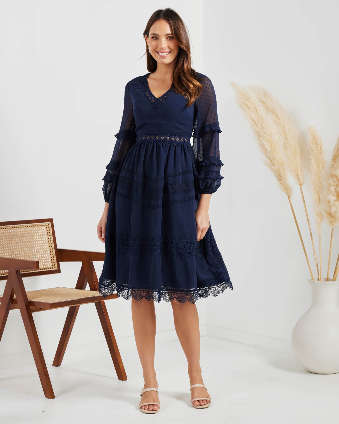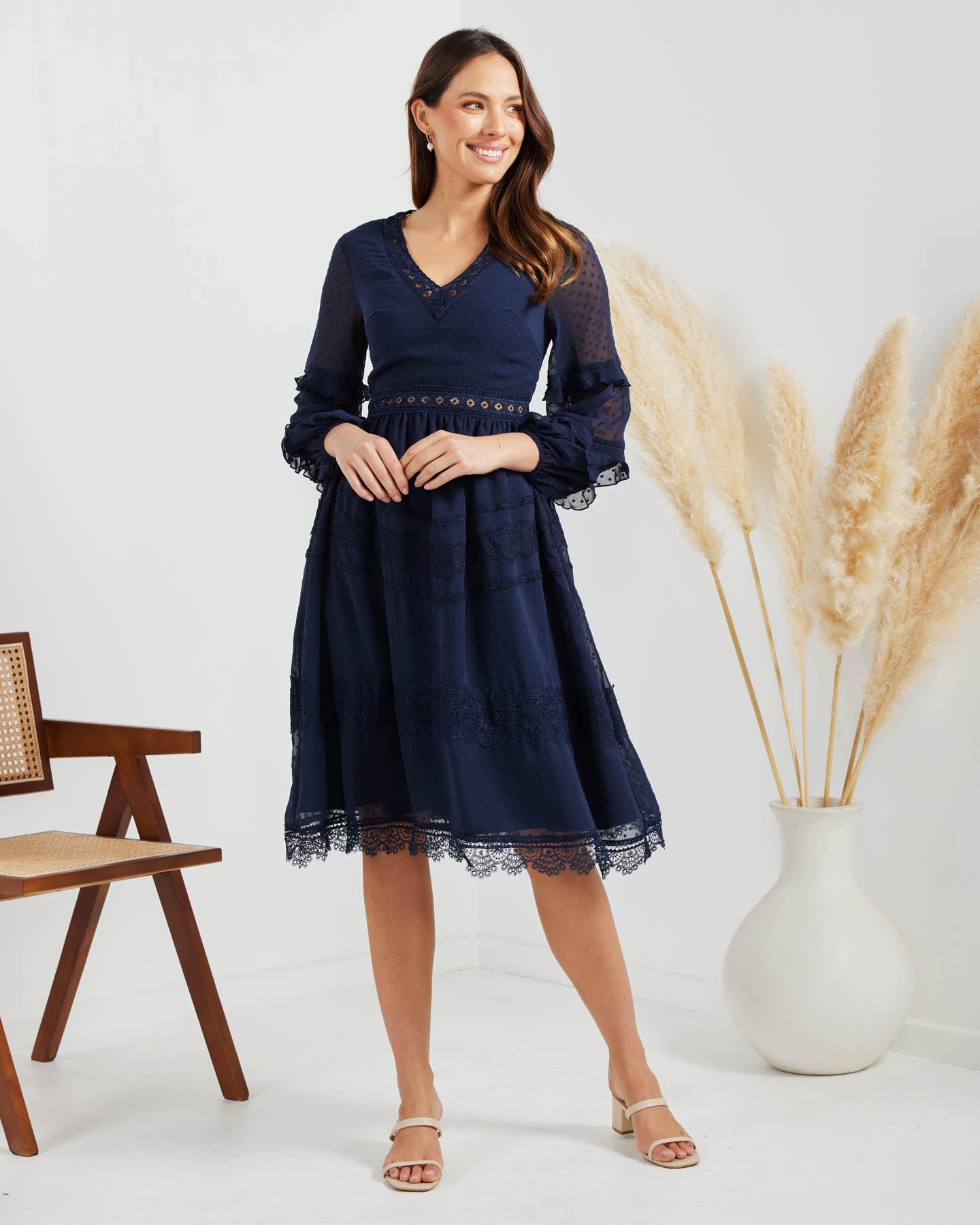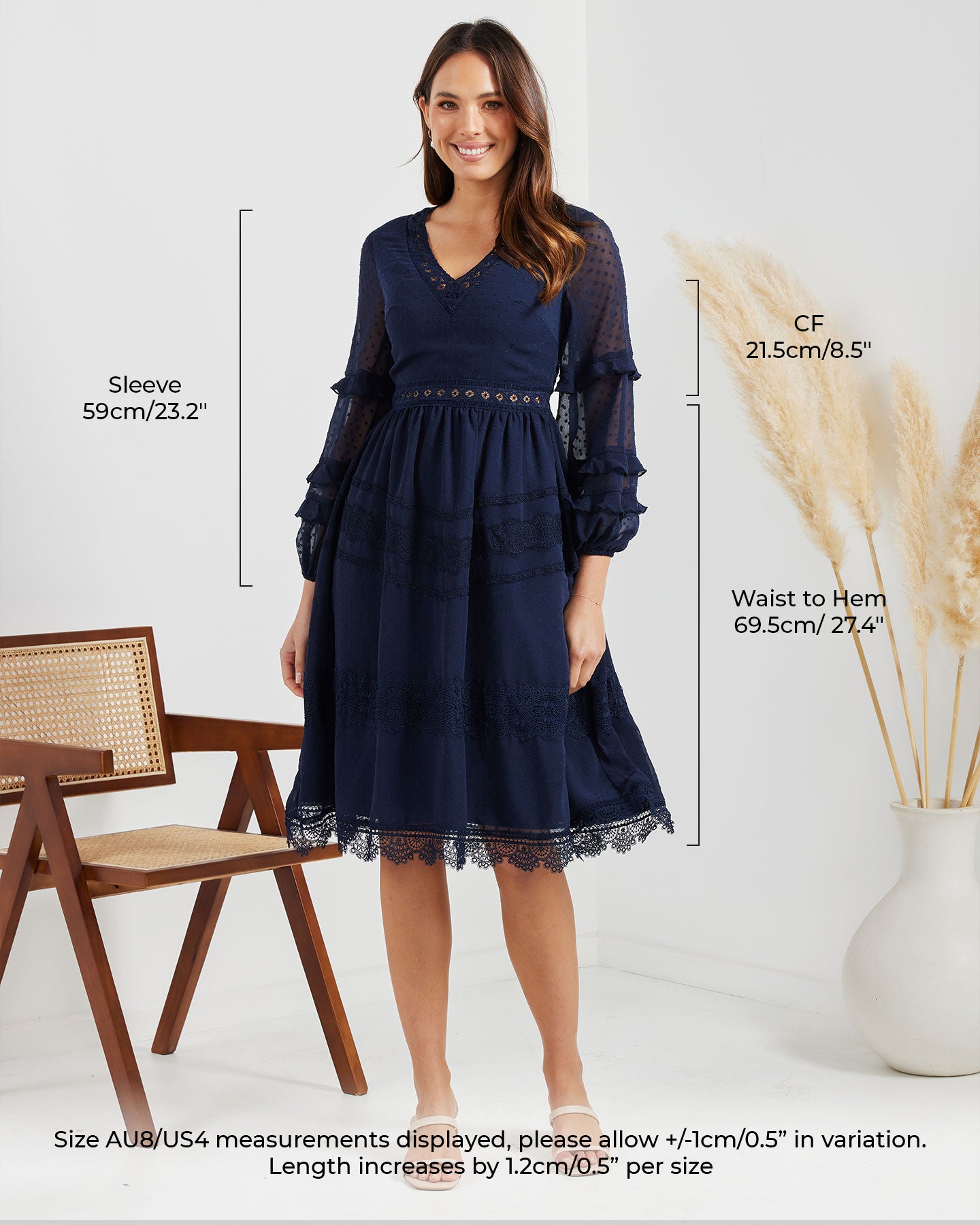 Like the Norse Goddess of Love, the Frida Dress signifies a wholesome romance, a womanly figure and a whimsical icon. Twosisters The Label designed this dress to drape over the delicate curves of the female figure. With sheer sleeves and lace detailing mimicking the softness of femininity, this dress is for the classically feminine ladies.