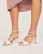 Embellished in pearls and rhinestones, the Sandra Heels by Twosisters The Label feature bejeweled straps around the ankles and satin-covered outer. The bridal heels of your dreams! Perfect for a grand wedding the little girl in you has always dreamed of!